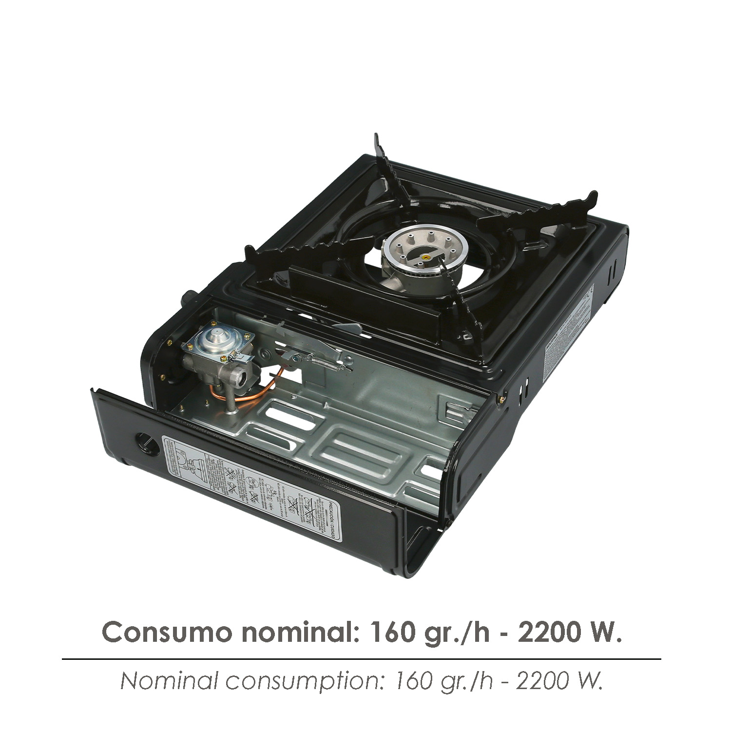 Cocina Gas Inoxidable A Cartucho Con Maletin, Cocina Portatil, Cartuchos Gas 230 gramos. Certificacion EN 17476/2021