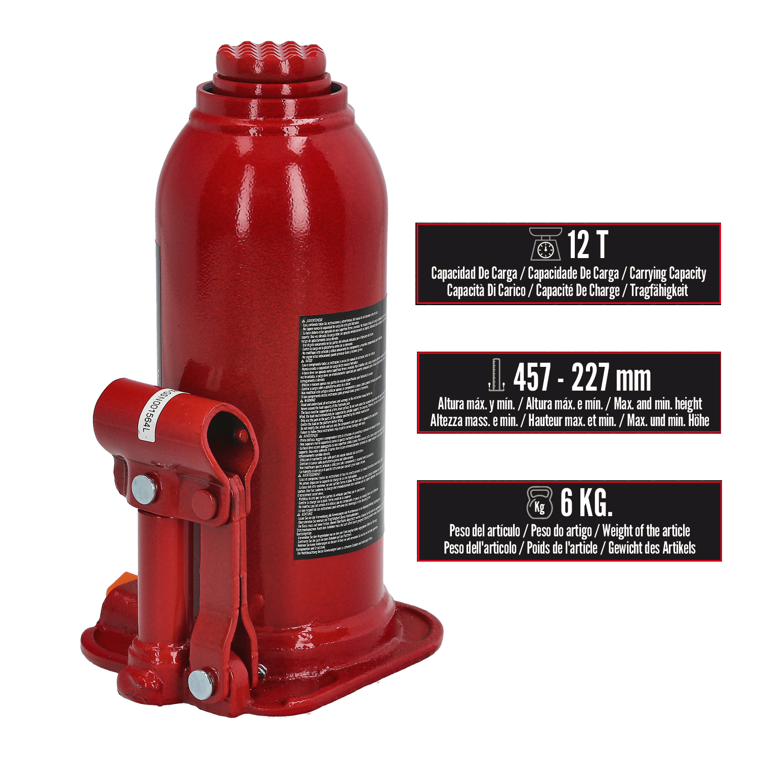 – Se coloca en posición vertical debajo de la carga y solamente bombeando su pistón hidraulico gracias a la palanca podrá elevar cargas sin apenas esfuerzo.